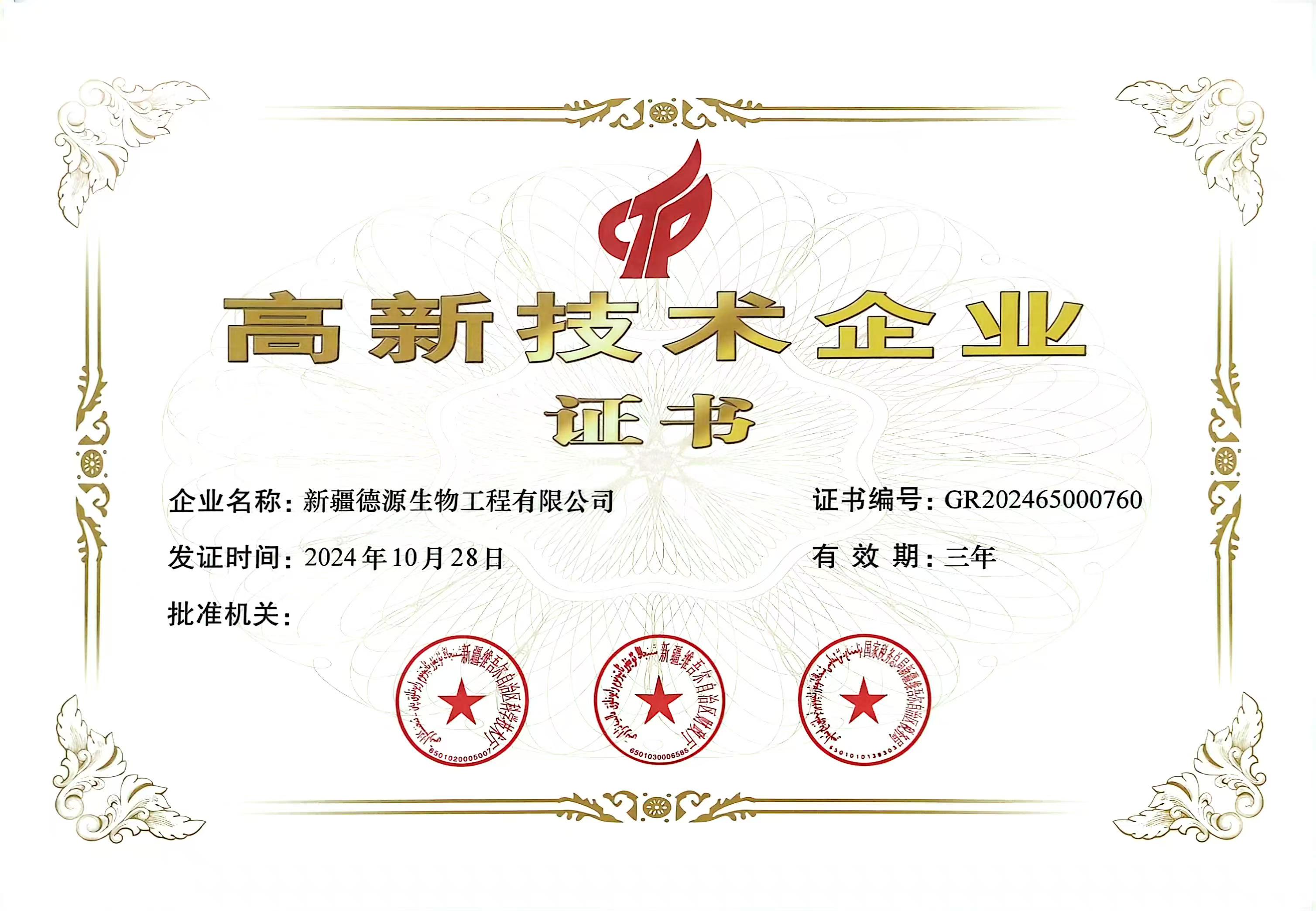 高新技术企业证书